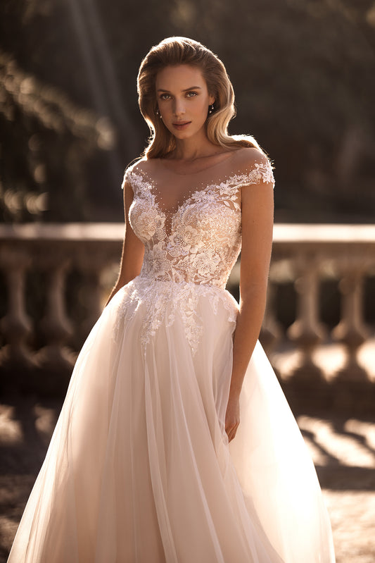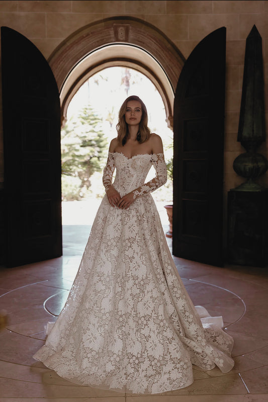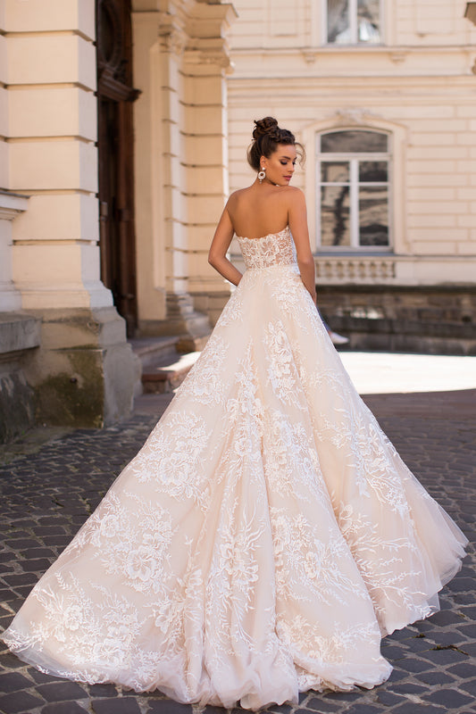 VESTIDO DE NOVIA CON ENCAJE FLORAL Y ESCOTE CORAZON - SHEREYA