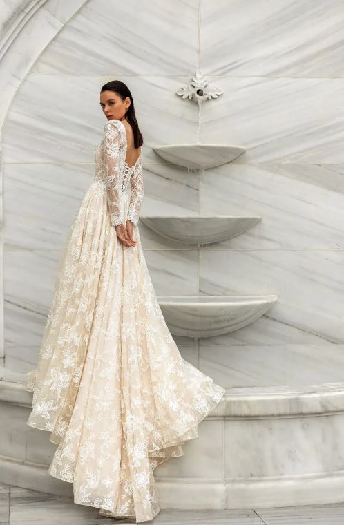 VESTIDO DE NOVIA CORTE A CON MANGAS CON APERTURA - SULTANA