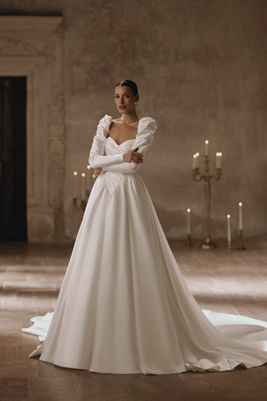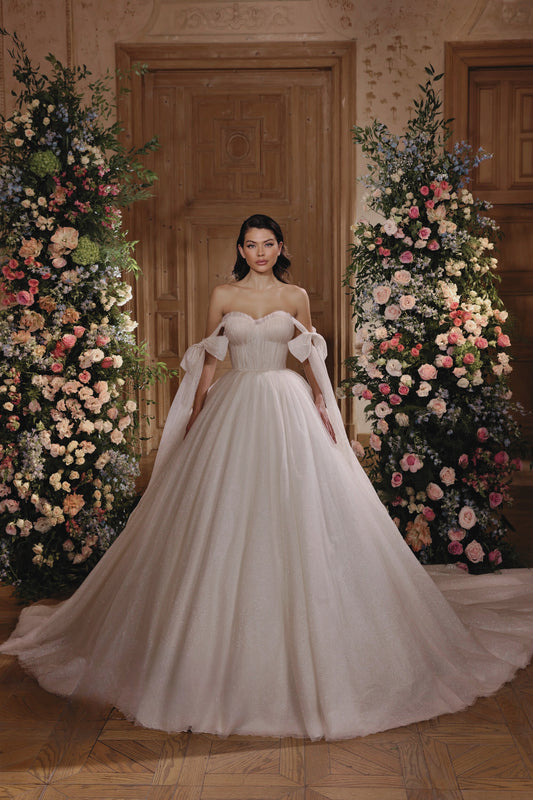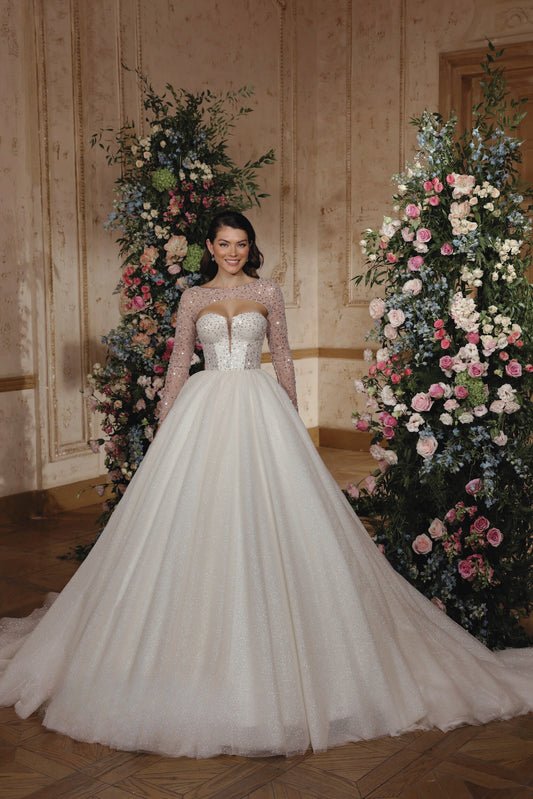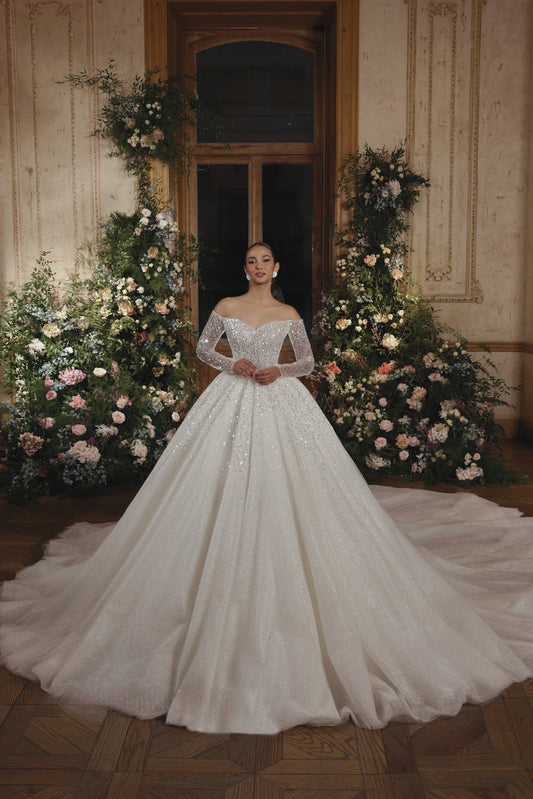ANAHI - VESTIDO DE NOVIA PRINCESA CON BRILLO MANGA CAIDA