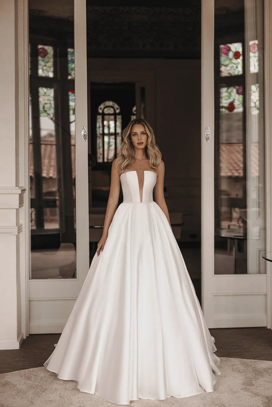 VESTIDO DE NOVIA LISO STRAPLESS - TEDESSA