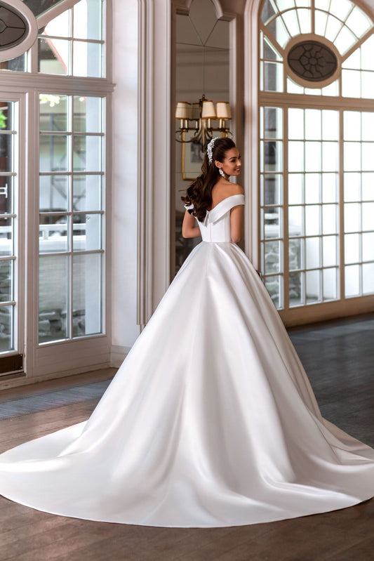 VESTIDO DE NOVIA LISO CON PERLAS - TILDA