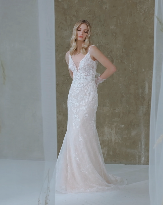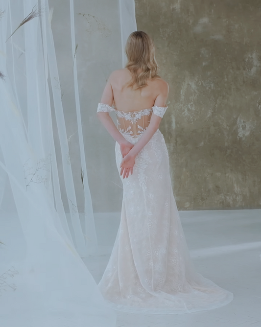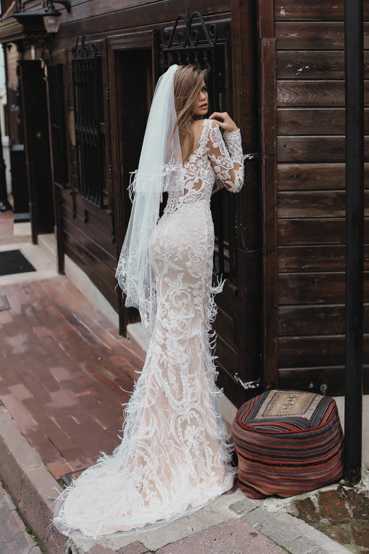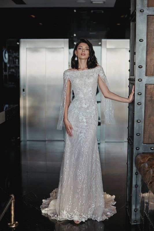 VESTIDO DE NOVIA SIRENA MANGA CAIDA - CHARMY
