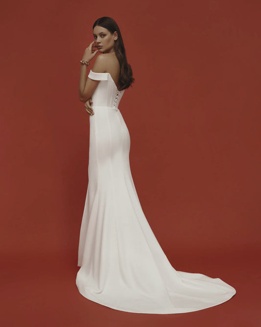 VESTIDO DE NOVIA MINIMALISTA CON APERTURA Y ESCOTE PROFUNDO - DICE