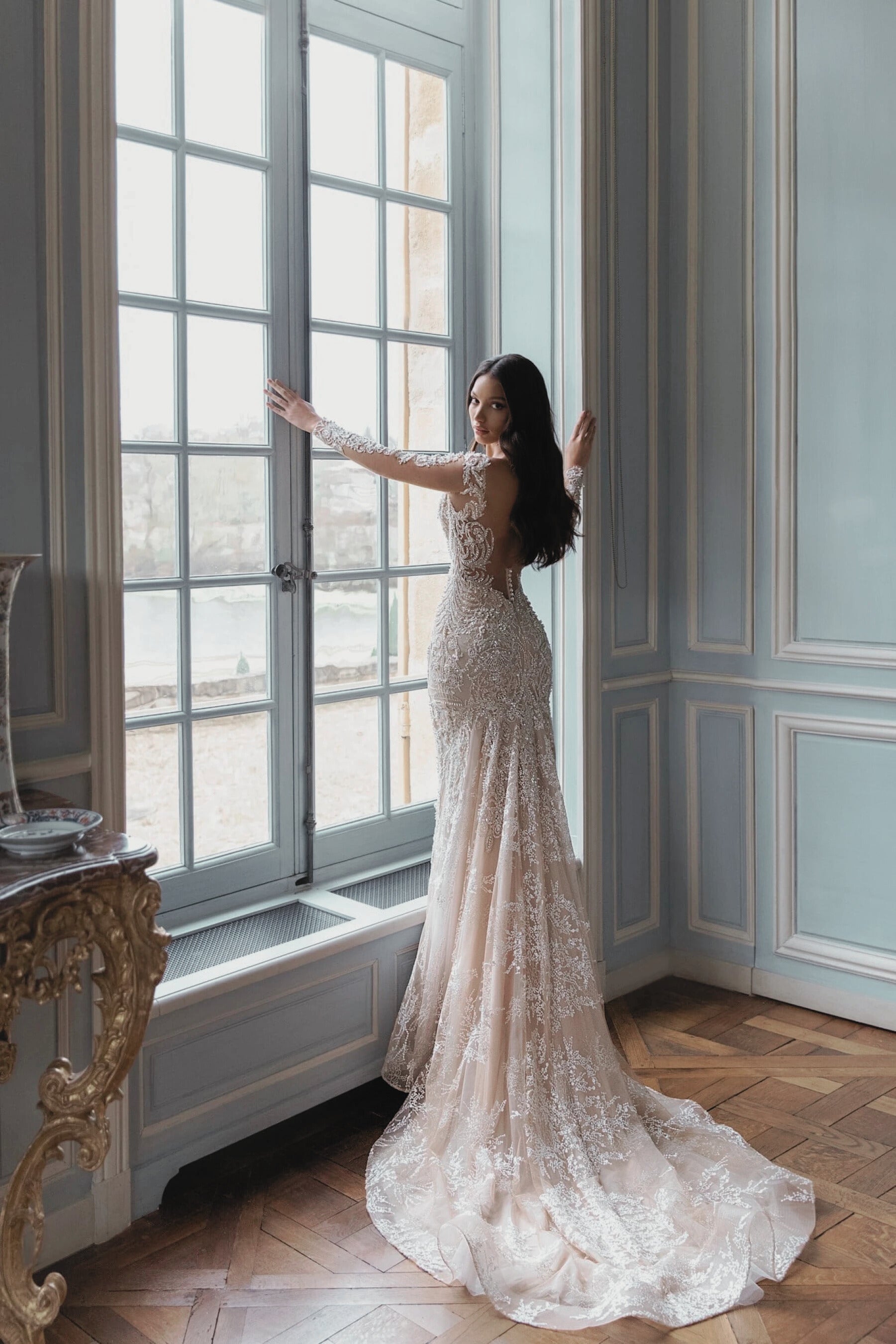 Vestido que transmiten la opulencia como un estilo de vida. Esta estudiado minuciosamente las necesidades de la novia moderna, las cuales se expresan en cada detalle del vestido de novia. S